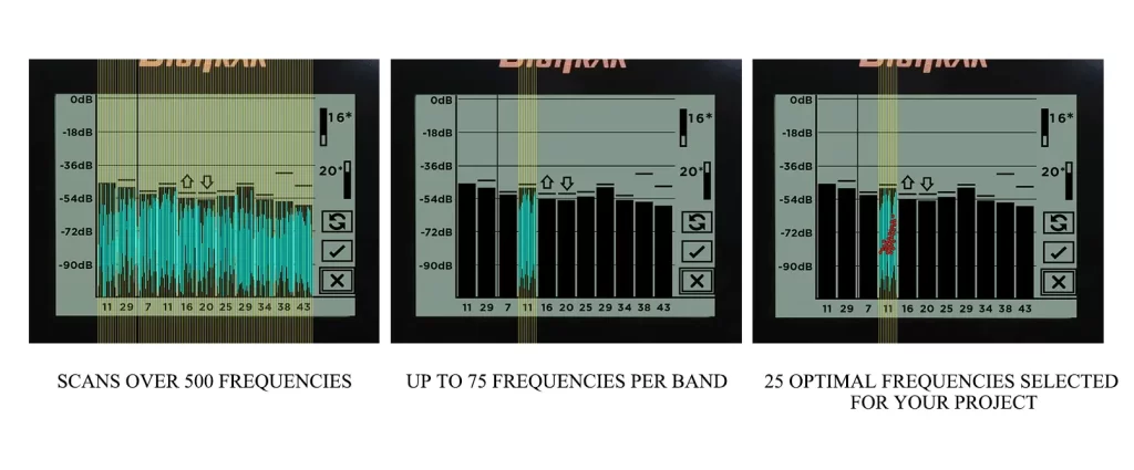 The Falcon F2+ can automatically scan over 500 frequencies and select the optimal frequencies in each band based on your job site conditions.